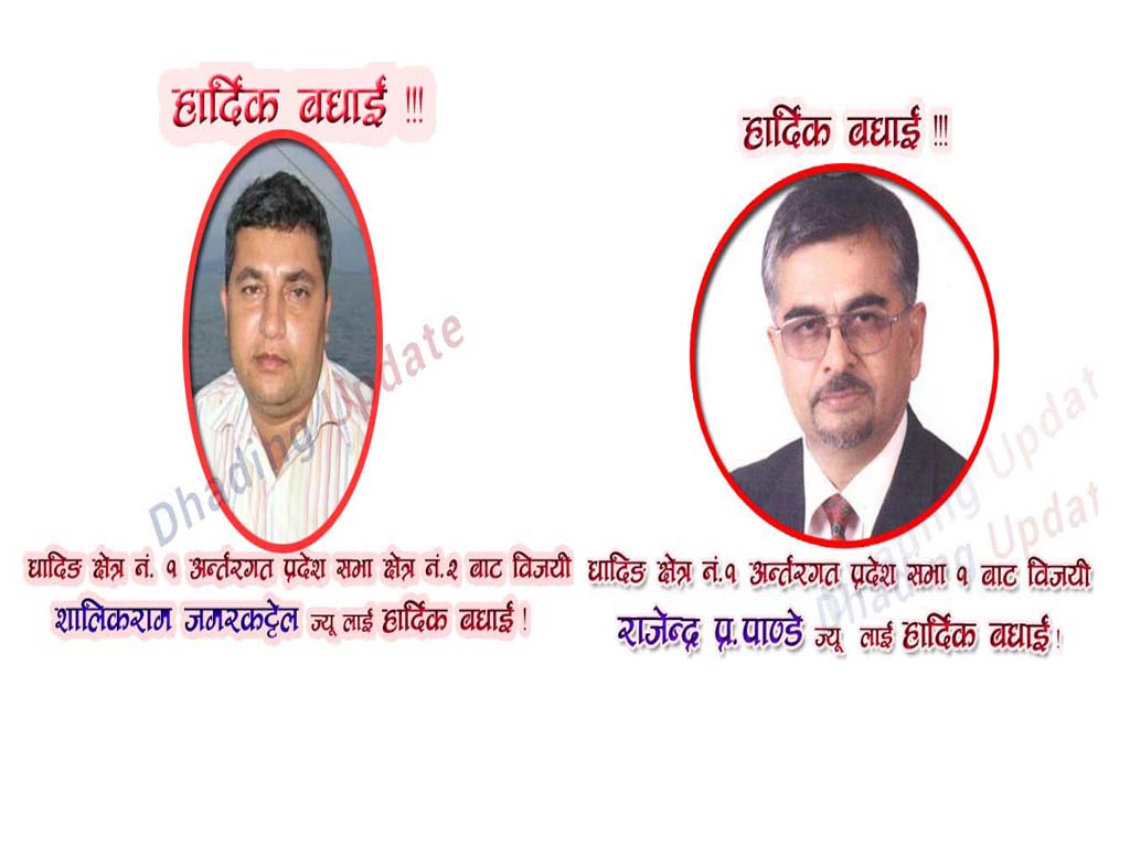 धादिङको प्रतिनिधि सभा क्षेत्र नम्बर १ अन्र्तरगत प्रदेश सभा १ र २ दुवै क्षेत्रमा बाम गठबन्धन विजयी भएको छ । प्रदेश सभा क्षेत्र नं। १ मा २७ हजार ३ सय ३२ मत ल्याई नेकपा एमालेका राजेन्द्र प्रसाद पाण्डे विजयी हुनु भएको हो । भने २३ हजार ३ सय ७ मत ल्याई माओवादी केन्द्रका शालिकराम जमरकट्टेल विजयी हुनुभएको हो ।