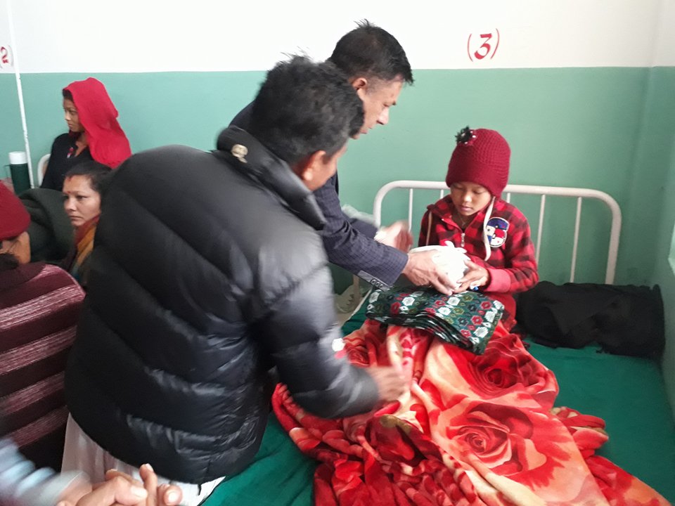 अस्पतालमा भर्ना भएका १६ जना विरामीलाई पास्टर सन्त बहादुर गुरुङद्धारा सामग्री वितरण गरिएको हो ।