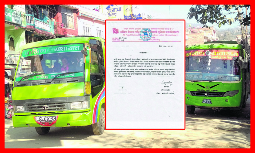 यातायात व्यवसायीहरुले निर्धारण गरेको नयाँ भाडादर फिर्ता गर्न अखिल नेपाल राष्ट्रिय स्वतन्त्र विद्यार्थी युनियन क्रान्तिकारी धादिङले माग गरेको छ ।