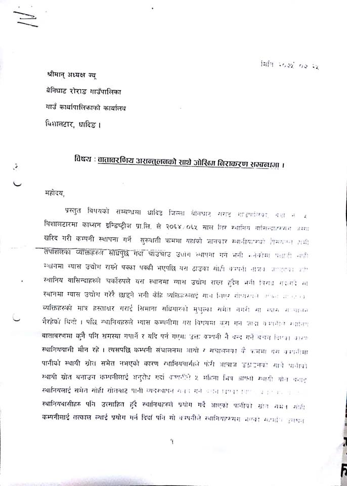 कात्तिक २६, वेनिघाट । धादिङको वेनिघाट रोराङ गाउँपालिका वडा नम्बर ५ विशालटारमा संञ्चालनमा रहेको श्रीमाया ग्याँस कम्पनी तत्काल बन्द गर्न