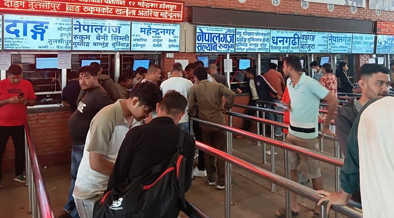 काठमाण्डाैको गोङ्गबुमा रहेको नयाँ बसपार्कमा यात्रुको घुइँचो लाग्न थालेको छ । दशैँ पर्व शुरू नहुँदै नयाँ बसपार्कमा यात्रुको घुइँचो लाग्न थालेको