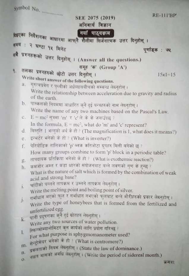 चैत्र १५ । प्रदेश नम्बर २ मा शुक्रबार हुने एसईई परीक्षाको प्रश्नपत्र पनि बाहिरिएको छ । जारी एसईई अन्तर्गत ‘अनिवार्य