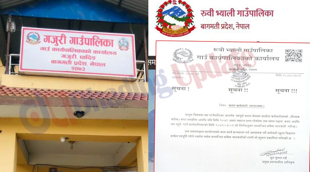 आर्थिक वर्ष २०७७/२०७८ आजदेखि सकिएको छ । आर्थिक वर्ष सकिएसँगै धादिङको २ ओटा स्थानिय तहमा करारमा रहेका कर्मचारीहरुको जागिर पनि