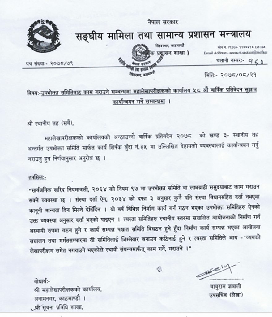 २५ मंसीर, धादिङ । गत महिनाको कात्तिक १४ गते शहरी विकास मन्त्री रामकुमारी झाँक्रीले मन्त्रीस्तरीय निर्णय गर्दै उपभोक्ता समितिमार्फत गरिने