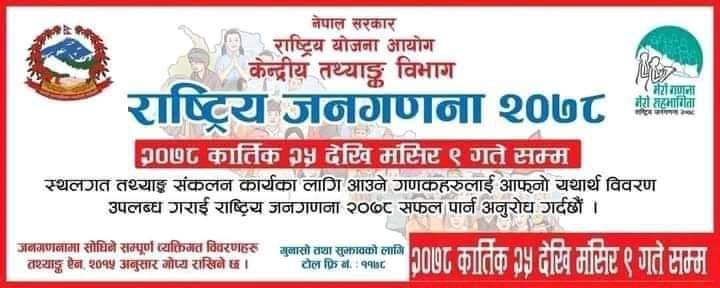 कार्तिक २५, धादिङ । ‘मेरो गणना मेरो सहभागीता ‘ भन्ने मूल नारा सहित आजबाट राष्ट्रिय जनगणना २०७८ सुरु भएको छ