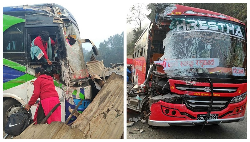 धादिङको थाक्रे गाउँपालिका–६ मा आज बिहान दुई वटा बस ठोक्किएर दुर्घटना भएको छ । काठमाण्डौबाट रसुवाका लागि छुटेको बागमती प्रदेश