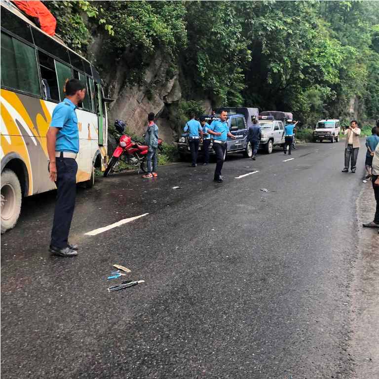 जेठ १५, धादिङ । पृथ्वीलोकमार्ग अन्र्तरगत धादिङको थाक्रे गाउँपालिका वडा नम्बर १ खयरघारीमा कन्टेनर र बस एक आपसमा ठोक्कीदा एक